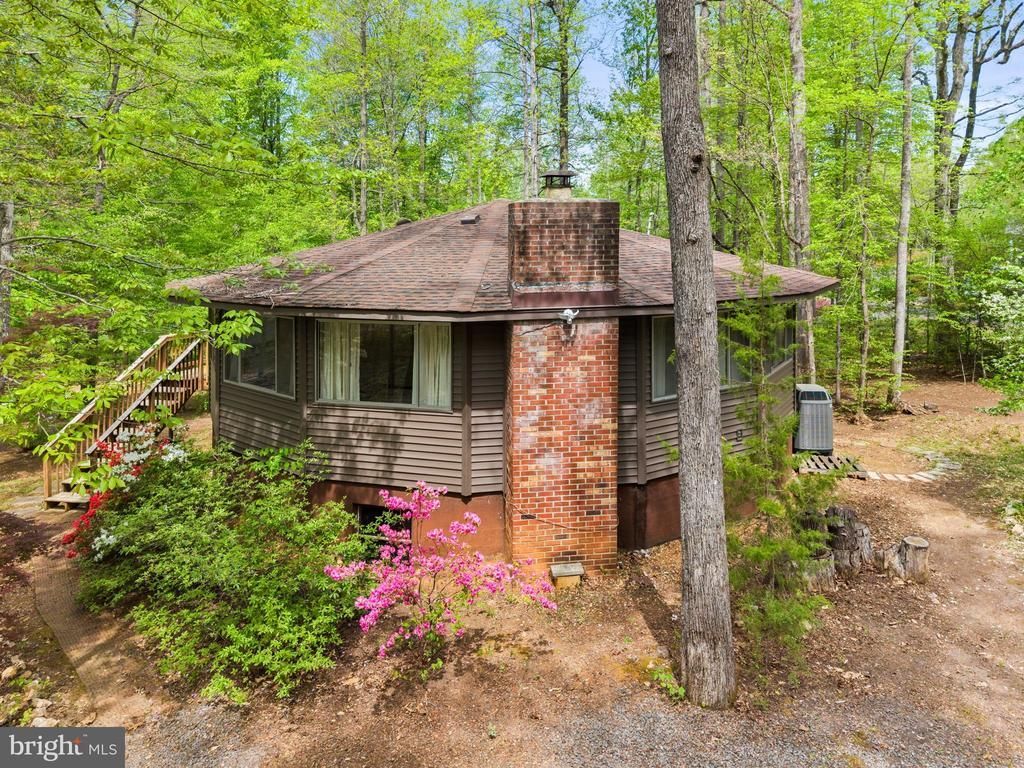 Escape to Lake of the Woods! This lovely round home sits on a wooded corner lot, steps away from Edgemont Beach. The main level of the home features a light-filled and open living room, with a table space. The kitchen is right off the living room, with stainless appliances and a bar. Enjoy the outdoors on the large deck, just off the kitchen and living room. A full hall bathroom is on this level, along with the primary bedroom, with a walk-in closet and en suite bathroom, and a second large bedroom. A spiral staircase leads to the mostly finished lower-level, which includes the rec room (with a wood burning fireplace), 3rd bedroom, full bathroom, laundry room (with utility sink & second fridge), a storage/utility room, and walk-out exterior doors. Many updates have been to the home, and some of note include the roof & roof structure (2015), exterior vinyl siding (2025), heat pump condenser motor (2020), living room windows and sliding door, flooring, and more! Carpet is also being installed in the second bedroom next week. The wooded lot has two driveway entrances, ample parking, a picnic area, and a shed below the deck. The gated Lake of the Woods community offers an endless list of amenities, including two lakes, trails, parks, pools, beaches, sporting courts, a golf course, clubhouse, restaurant, equestrian center, fire & rescue department, and more! Don’t miss your opportunity to be the next owner of this one-of-kind property!