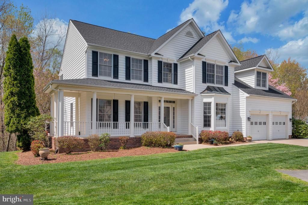 Stunning, freshly painted home on a private, oversized wooded lot offering the perfect blend of space, comfort, and natural beauty. This beautifully maintained three-level colonial features over 5,000 square feet of exceptional indoor-outdoor living. An expansive wraparound porch connects to the rear deck and sunroom with peaceful wooded views. Inside, enjoy a grand two-story foyer, private office, formal living and dining rooms, and a spacious updated kitchen with granite counters, island, ceramic backsplash, and butler’s pantry. The two-story family room with fireplace is perfect for gathering, plus convenient main-level laundry. Upstairs offers four generously sized bedrooms, an updated hall bath, and a luxurious owner’s suite with walk-in closet and spa-like bath. The fully finished walkout lower level includes a large rec area, oversized bedroom, and full bath—ideal for guests or extended living. Located on over ¾ acre in an amenity-filled neighborhood with playgrounds, tennis court, community pool, and clubhouse. Convenient to I95, shopping, restaurants, and commuter lots. Schedule your private tour today!